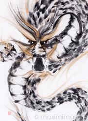 Descriptive keywords: dragon, dragons, ryū, ruy, tatsu, fire, painting, paintings, illustration, zen, design, art, arts, visual, japanese, buddhism, asian, taoism, tao, chinese, oriental, legend, flying, snake, snakey, scales, serpent, draconic, draconian, draconis, folklore, lore, fiery, mystical, mystic, mysticism, mythology, mythological, myth, fantasy, creature, fierce, symbol, symbolism, power, wisdom, enlightenment, strength, guardian, spirit, designs, sumi-e, sumi, sumie, artwork, intricate, artistic, fine art, beautiful, rice paper, ink, drawing, gold, golden, white, isolated, white background, sumi e, sumie-seal