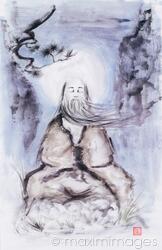 Descriptive keywords: monk, sage, wise, man, meditating, old, master, zen, meditation, teacher, daoist, buddhist, sumi-e, sumi, painting, art, dao, daoism, buddhism, tao, happy, joyous, smiling, smile, spiritual, spirituality, shen, spirit, still, stillness, bliss, blissful, serene, serenity, calm, silence, inner, peace, buddhahood, artwork, fine art, ancient, elderly, beard, wind, chinese, japanese, peaceful, asian, oriental, taoist, taijiquan, eastern, ink, wisdom, drawing, paintings, arts, white, sumi e, sumie, rock, taoism, night, moon, full moon, mountains, blue, color, colour, tranquil, immortal, immortals, practitioner, alchemy, alchemical, nei dan, neidan, cultivation, cultivating, simple, simplistic, person, taiji, people, pine, tree, under, branch, rice paper, sumie-seal, illustration, illustrations, print, abstract, artistic