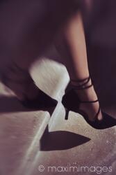 Rights-Managed photo of Closeup of woman legs in black high heel shoes walking down the stairs in dark house. Artistic dramatic concept. Photo by Alex Maxim. This image is available for licensing for a variety of editorial and commercial uses in publications, designs, print and online.