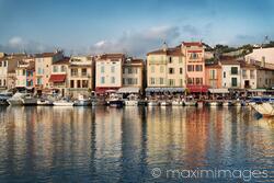 Rights-Managed photo of Cassis port town quay, boats in the harbor, beautiful historic French architecture, South of France, Occitan. Cassis travel photography. Photo by Alex Maxim. This image is available for licensing for a variety of editorial and commercial uses in publications, designs, print and online.