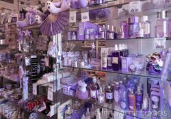 shop, store, display, france, provence, lavender, perfumes, souvenirs, gifts, souvenir, bottles, colored, coloured, scented, albi, french, south, southern, d'albi, travel, destination, destinations, shops, stores, inside, nobody, gift, items, color, colour, purple, violet