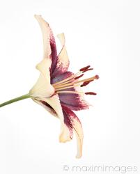 Descriptive keywords: lily, lilies, asiatic, flower, purple, pink, red, yellow, closeup, flowers, side, side view, open, plants, beautiful, petals, large, nature, close-up, close up, upclose, nobody, inside, exotic, artistic, light, bright, studio, studio shot, white background, cutout, cut out, cut-out, isolated, color, colour, colors, stamen, stigma, stamens, white, anther, anthers, horticulture, floral
