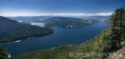 Rights-Managed photo of Panoramic aerial landscape scenery of Vancouver Island from Salt Spring island, Mount Maxwell Provincial Park. The Gulf Islands, Saltspring Island, Salish Sea. British Columbia, Canada. Travel and nature photography. Photo by Alex Maxim. This image is available for licensing for a variety of editorial and commercial uses in publications, designs, print and online.