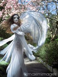 Descriptive keywords: mysterious, asian, woman, dancing, dancer, dance, oriental, white, mask, face, dress, fan, fans, gracefully, spring, flowers, magnolia, tree, trees, blossoms, garden, nature, bloom, blooming, blossom, springtime, season, seasons, scenery, outdoor, taichi, tai chi, grace, graceful, silk, hand, beautiful, ghostly, spirit, ghost, god, sheer, flowy, flowing, wind, veil, fluttering, dramatic, dynamic, dreamy, spiritual, girl, femininity, internal, power, powerful, witch, occult, occultic, supernatural, mystical, magical, outdoors, performer, performing, goddess, spooky, scary, angel, demon, priestess, outside, standing, windy, blue, mythical, coast, alone, martial art, martial arts, warrior, martial artist, practicing, gown, fabric, silky, looking, dream-like, atmospheric, moody, artistic, arts, mood, kung fu, lady, tranquil, one, person, female, women, art, nightmare, ghost-like, fine art, cinematic, chinese, japanese, geisha, young, adult, hanfu, historical, traditional, masks, scenic, concept, conceptual, long hair, brunette, abstract, unrecognizable, obscure, obscured, classic, twentysomething, twenties, light, 20-30, 20s, 30s, thirtysomething, thirties, 30-40, thirty, color, colour, mystery, females, full body, eye contact, looking at camera, sensual, seductive