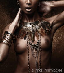 Descriptive keywords: exotic, beauty, portrait, tribal, woman, accessories, naked, skin, topless, feathers, beautiful, young, bird, birdy, crow, themed, styling, feather, necklace, metal, dark, bronze, covering, body, half-nude, half-naked, barde, breast, breasts, revealing, half naked, face, style, animal, avian, black and white, monochrome, female, girl, magpie, bird-like, bird like, women, faces, portraits, dramatic, expressive, artistic, nude, half nude, necklaces, shiny, one person, jewelry, jewellery, jewelery, shaman, shamanic, native, aboriginal, gold, brown, fierce, indian, american, aztec, wild, styled, fashion, feathery, creative, power, goddess, witch, witchy, powerful, ethnic, ethnicity, ethnics, asian, unusual, edgy, bizarre, studio shot, waist up, half body, sexy, strong, expression, front view, indoor, indoors, people, twentysomething, twenties, twenty, 20s, 20, 20-30