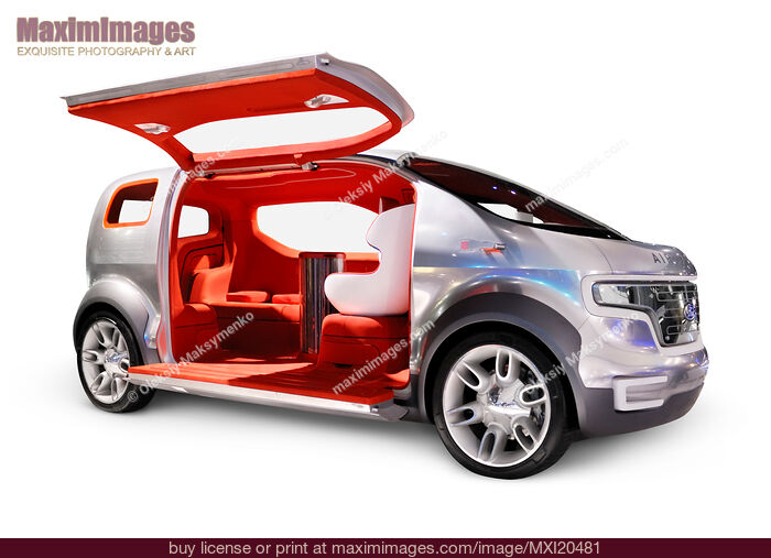 Ford Airstream futuristic crossover concept car powered by HySeries Drive plug-in hydrogen hybrid fuel cells Isolated silhouette with clipping path on white background