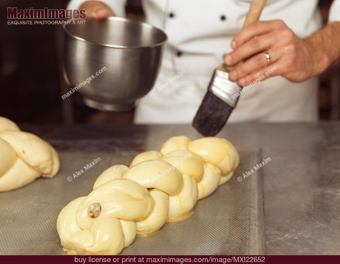 Stock photo of Baker Glazing Bread Buy commercial use license at MaximImages