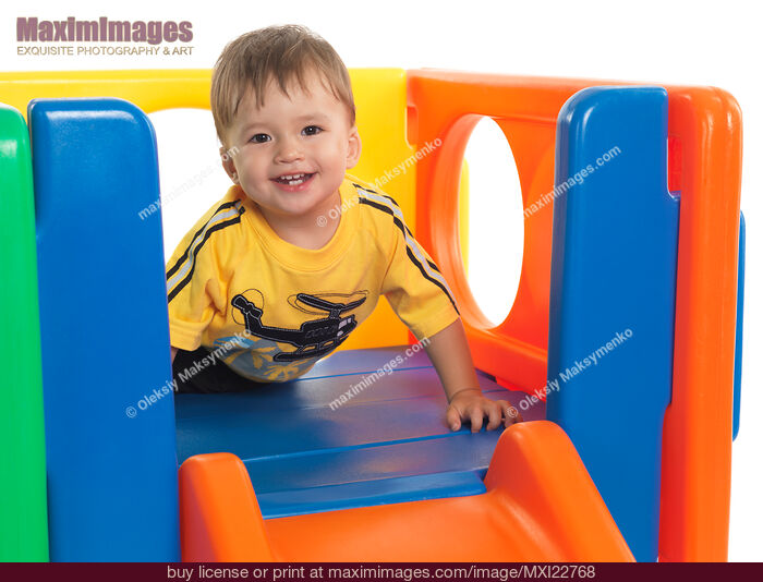 Image keywords: child, playing, climbing, slide, crawling, toy, climber, kid, boy, toddler, little