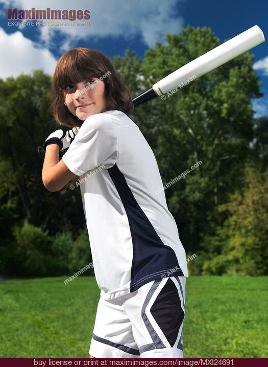 Stock photo of Boy with a bat practicing baseball Buy commercial use license at MaximImages