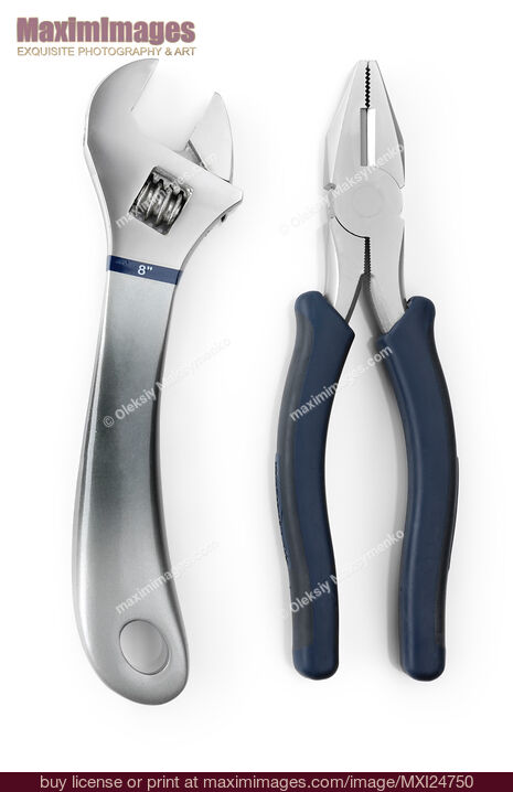 Stock photo of Adjustable Wrench and Pliers Buy commercial use license at MaximImages