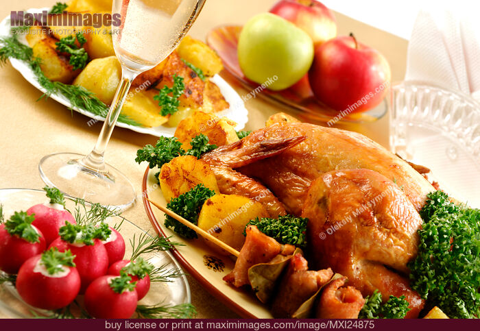 Stock photo of Roast chicken food still life Buy commercial use license at MaximImages
