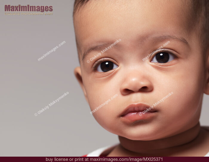 Stock photo of Cute black baby girl closeup portrait Buy commercial use license at MaximImages
