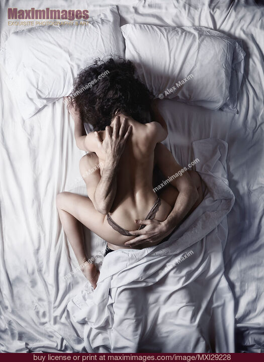 Stock Photo of Sexy couple making love in bed view from above of a woman on top of a man