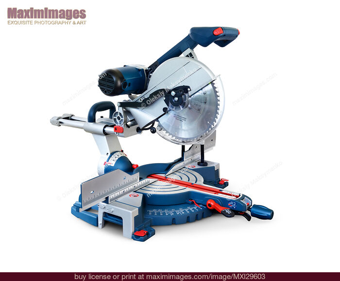 Stock photo of Miter saw Mitre saw isolated on white Buy commercial use license at MaximImages