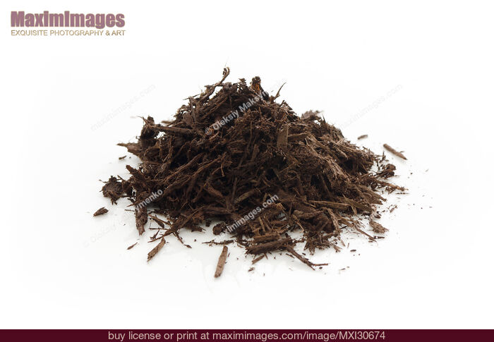 Image keywords: mulch, bark, wood, chips, soil, organic, mulches, isolated, white, white background, pile